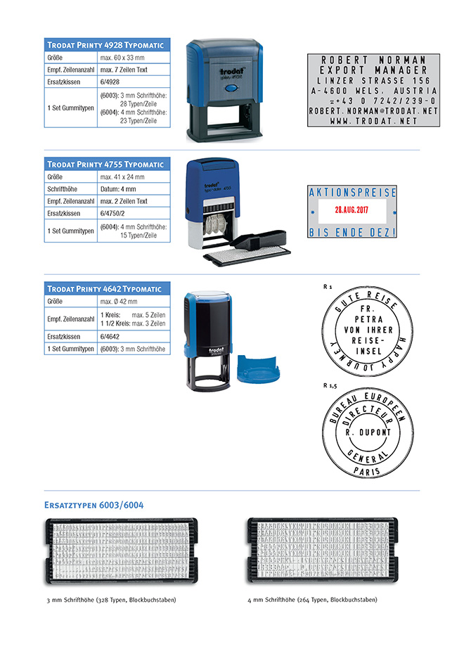 Datums- und Ziffernstempel. Stempel mit Fertigtexten und zum Selbersetzen.